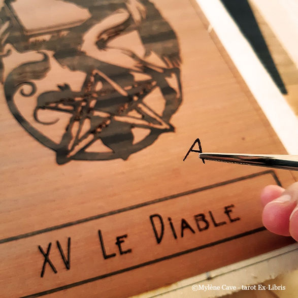 Projet ambitieux sur le long terme, démarré en Mars 2020, Hex Nihilo (Audrey) écrit les textes à Montréal et Mylène réalise les Arcanes en marqueterie de deux essences de bois, pour respecter le visuel des Ex-Libris. Un important travail de recherche est mené pour trouver des Ex-Libris libres de droits, en lien avec la signification des Arcanes et notre cohérence artistique.