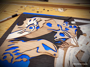 Intéressée par les nouvelles technologies, Mylène a créé ses propres techniques de marqueterie découpée au laser après 2 ans d'explorations en autodidacte dans des fablabs de Montréal et Poitiers. Elle utilise également le scalpel et tout le matériel disponible à notre époque pour pouvoir créer ses designs.